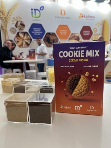 Cookie Mix – Cereal Fusion, developed especially for Food Ingredients Europe 2025, is a two-in-one ready-to-bake cookie mix including two recipes: Pop-corn flavour and Cacao-Malt flavour offering a completely new cookie experience. A unique creation from sister companies Kalizea, ID Ingredients - a brand of Grands Moulins de Paris, and Diamalteria Italiana combining technical expertise with sensory innovation through grain-based ingredients sourced from three different cereal sectors: